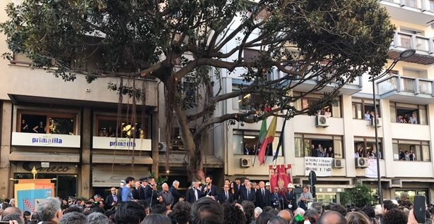 Nel pomeriggio i due cortei, quello partito dall’aula Bunker e quello di Via D’Amelio si sono incrociati per dirigersi all’albero Falcone dove alle ore 17:58 verrà osservato il minuto di silenzio.