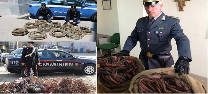 Nel nostro Paese, sono state tratte in arresto 24 persone e altre 150 sono state denunciate in stato di libertà; sono stati scoperti 212 reati (33 furti, 54 ricettazioni, 106 crimini ambientali e 19 altri reati) e sono state contestate 232 violazioni amministrative (ambientali, fiscali, violazione al codice della strada etc). Sono, inoltre, stati sequestrati circa 270.461 kg. di metalli dal controvalore totale di € 449.690 circa (di cui 70.673 kg. di rame, per un valore di circa € 409.906), 983 pannelli solari e 103 veicoli.