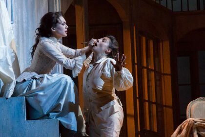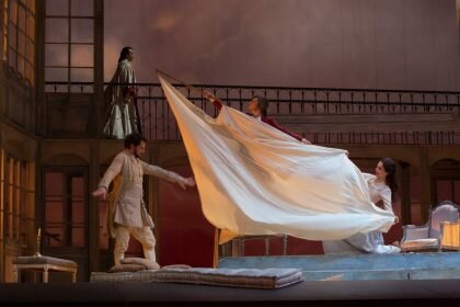 In scena Simone Alberghini nel ruolo del Conte d’Almaviva, Mariangela Sicilia in quello della Contessa d’Almaviva, mentre la coppia Susanna-Figaro è interpretata da Maria Mudryak e Alessandro Luongo, e nel ruolo en travesti di Cherubino vi è Paola Gardina. Con loro Laura Cherici (Marcellina), Emanuele Cordaro (Don Bartolo), Bruno Lazzaretti (Don Basilio), Giorgio Trucco (Don Curzio), Daniela Cappiello (Barbarina) e Matteo Peirone (Antonio). Orchestra e Coro del Teatro Massimo, Maestro del Coro Piero Monti, Maestro al fortepiano Giacomo Gati. Le nozze di Figaro è la prima opera frutto della collaborazione tra Mozart e il librettista Lorenzo Da Ponte, cui seguiranno poi Don Giovanni e Così fan tutte. Rappresentata per la prima volta nel 1786, per andare in scena dovette sfidare i mille intrighi della corte asburgica e la censura, che aveva proibito di rappresentare la commedia di Beaumarchais dalla quale è tratto il libretto. Ma l’opera conobbe subito un grande successo sia a Vienna, grazie anche al favore dell’imperatore Giuseppe II, che soprattutto a Praga, dove fu rappresentata immediatamente dopo. Il successo del quale l’opera da allora ha sempre goduto è dovuto alla perfezione del meccanismo drammaturgico e della struttura musicale, realizzati da Da Ponte e Mozart con un’attenzione minuziosa ai minimi particolari e un complesso gioco di rimandi – accuratamente indagati dal direttore Gabriele Ferro – che lasciano però allo spettatore un’impressione di grande naturalezza, mentre la vicenda e la musica della Folle journée scorrono verso il lieto fine. Nella lettura di Chiara Muti i due elementi fisici che dominano la scena sono la corte, rappresentata dalle scale, simbolo dei cambiamenti sociali, e la natura, che pian piano riesce a riconquistare lo spazio; così come tutta l’opera si configura come un dialogo tra desiderio e amore, presenti in scena fin dal principio e declinati in tutte le forme possibili. Le nozze di Figaro disegnano l’uomo per quello che è, con vizi e virtù: la miseria della natura umana e allo stesso tempo la grandezza che l’uomo ha nel far fronte al proprio destino e nel perdonarsi, nonostante tutto.